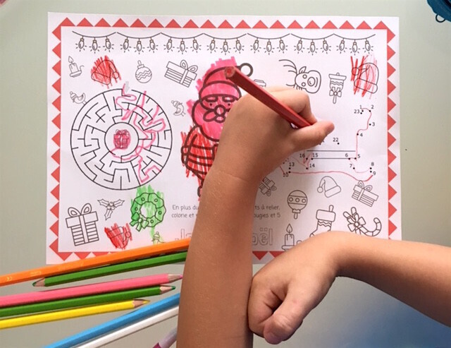 Aujourd’hui, ce sont des sets de table que nous avons réalisé. Super à disposer sur la table des enfants pendant la période des fêtes ou si vous allez au restaurant et que l’attente est trop longue. Voilà de quoi les divertir un bon moment !