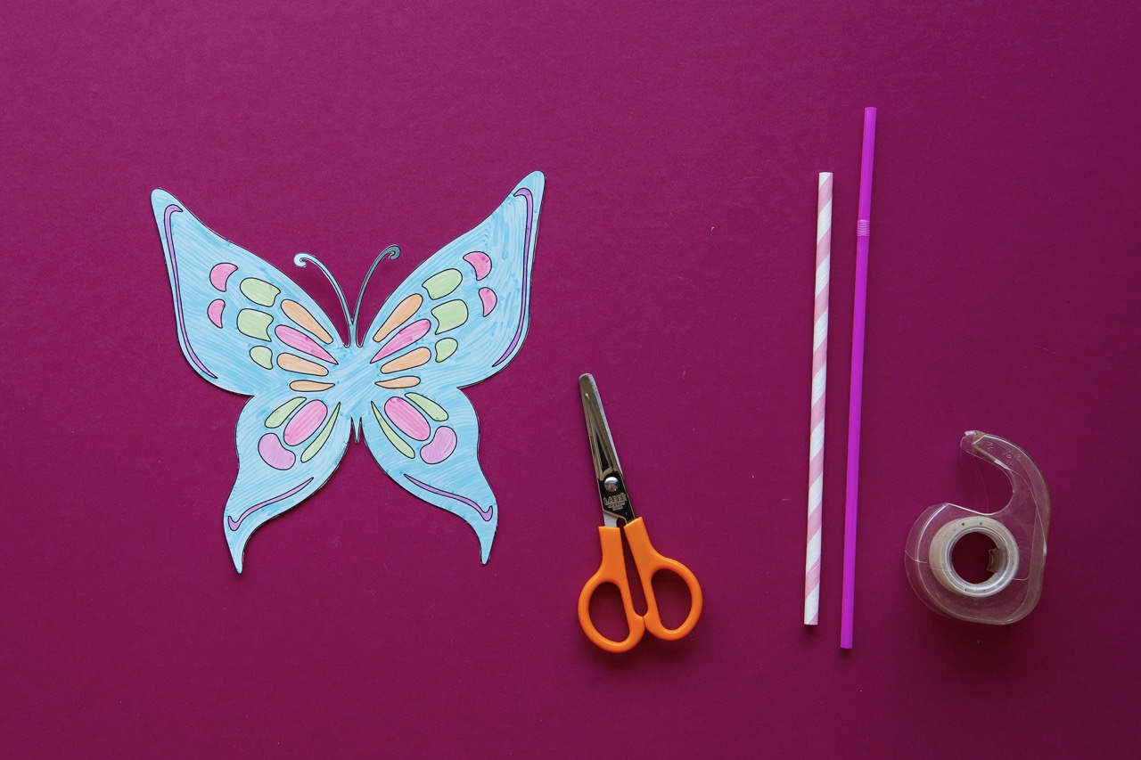 Étape 2 : découpe le papillon et prépare le matériel nécessaire pour la suite.