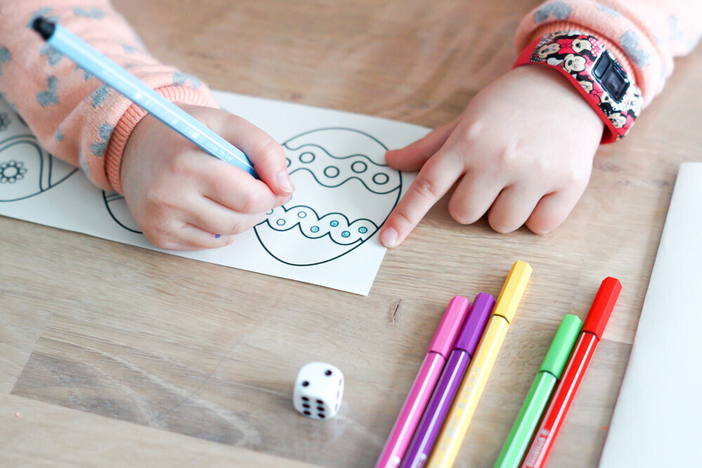 Deux possibilités : soit vous imprimez directement les fiches printables coloriées mise à disposition (en bas de l’article), soit vous imprimez la version vierge et vous coloriez les œufs. Pour que le jeu dure dans le temps, ici aussi je vous conseille de le plastifier.