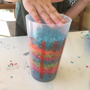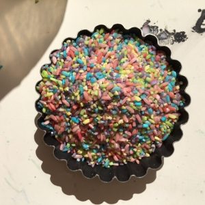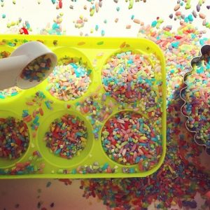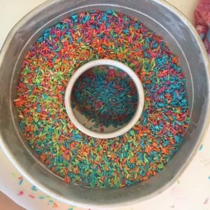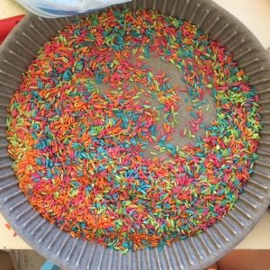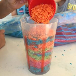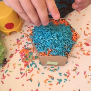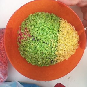 Et pour transvaser, j’ai trouvé l’activité suprême, le graal, l’apothéose ultime : le riz coloré.