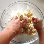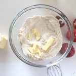 - rajouter le beurre en petit morceau et sabler de façon à faire des petites miettes de formes et de tailles différentes (le beurre ne doit pas être pommade mais plutôt frais, le simple fait de sabler va le ramollir et suffira amplement à faire des petites miettes)