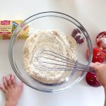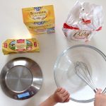 - mélanger la farine et le sucre (et la poudre d’amande si vous souhaitez en mettre)