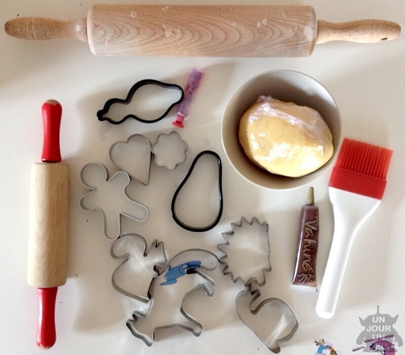 Et j’ai trouvé. Bingo, des sablés ! D’une part, ça a occupé l’ainé pendant que les deux plus petits faisaient leur sieste car on en a profité pour préparer la pâte tous les deux, tranquillement. Puis ils sont allés se reposer (la pâte et le plus grand…). Enfin, quand ils se sont réveillés (je parle des enfants cette fois), ils se sont éclatés à rouler, pétrir, trouer, découper la pâte. Bon, ok, les jumeaux ont du rester concentré (maximum) 10 minutes avant de manger les 2/3 de leur pâte. Mais c’est déjà ça, non ??