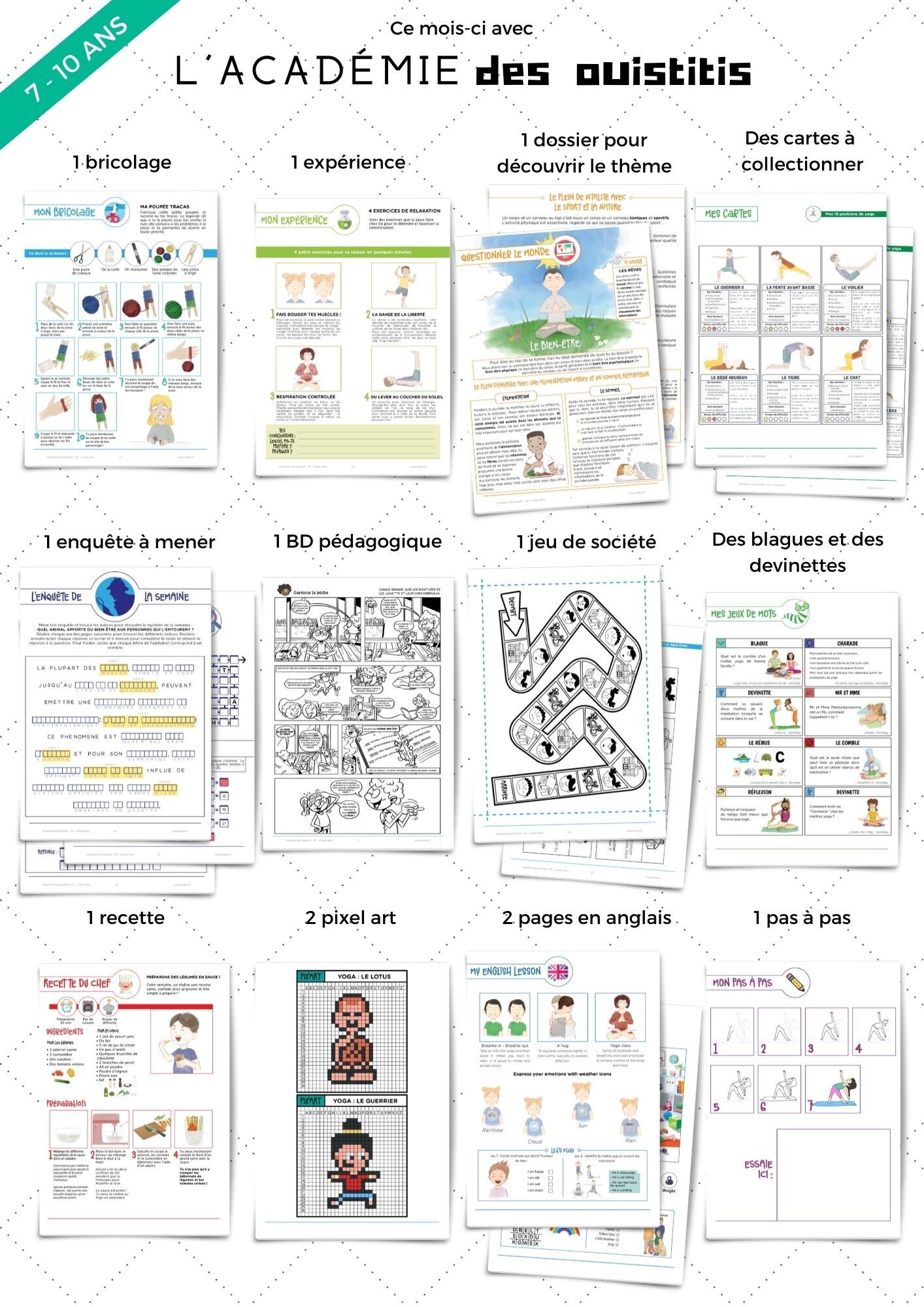 Des jeux de cartes, de plateau, des activités à faire seul ou en groupe, des expériences et des bricolages à réaliser, des recettes à préparer et encore bien d’autres supports.