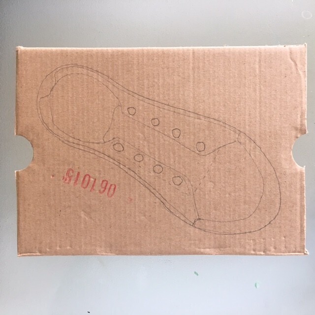 1. Vous prenez votre bout de carton et vous dessinez le contour d’une chaussure (je me suis aidée d’une chaussure de mes fils).