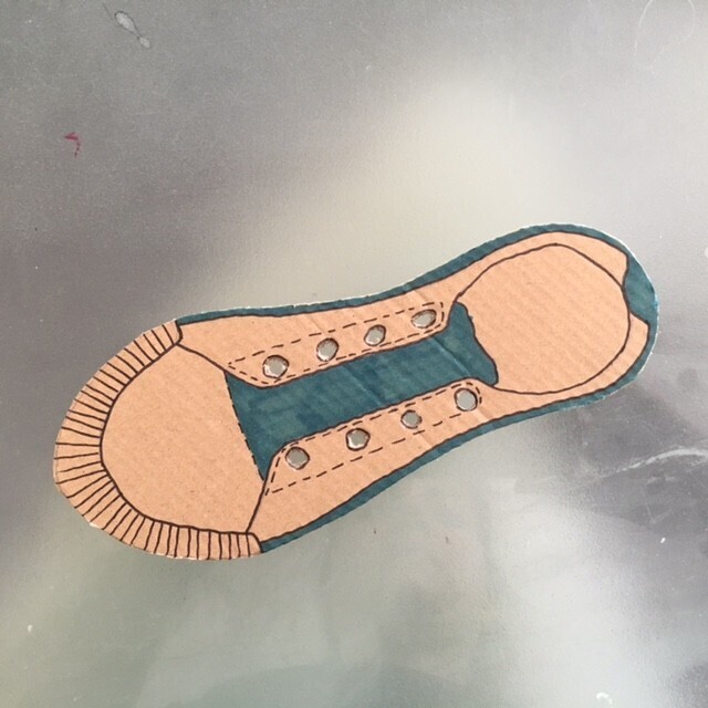 2. Découpez le carton et dessinez l’intérieur de la chaussure (faites parler votre créativité !).