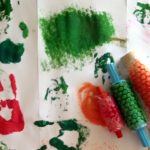 Activité foirée : papier bulle sur rouleau de pâtisserie.