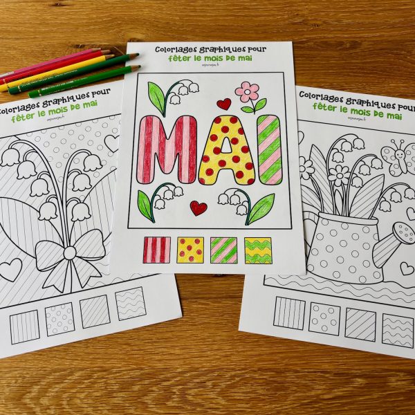 Le mois de mai arrive avec ses fleurs, ses petits bonheurs simples et, bien sûr, ses brins de muguet. Pour l’occasion, je vous propose une petite activité douce et facile à mettre en place avec les enfants : 3 coloriages graphiques sur le thème du printemps et du 1er mai, pensés spécialement pour les enfants dès 3 ans.