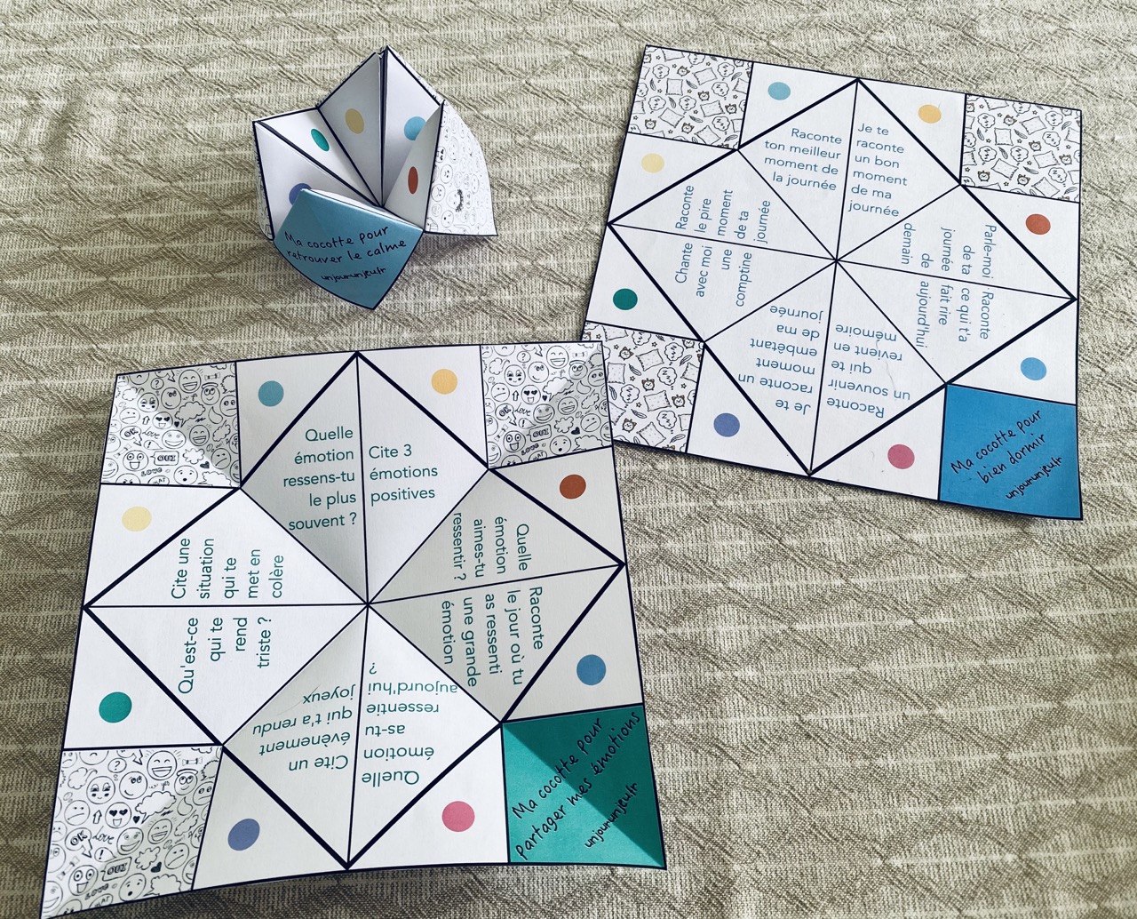3 cocottes ludiques et pédagogiques pour permettre d’apaiser une colère, de parler de sa journée avant d’aller se coucher ou de partager ses émotions du moment.